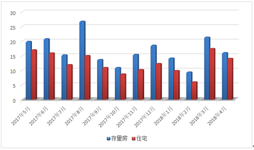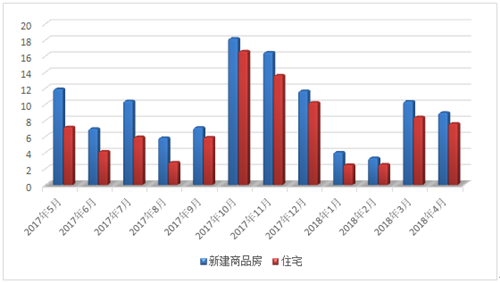 2017年5月—2018年4月新建商品房和住宅成交面积对比图